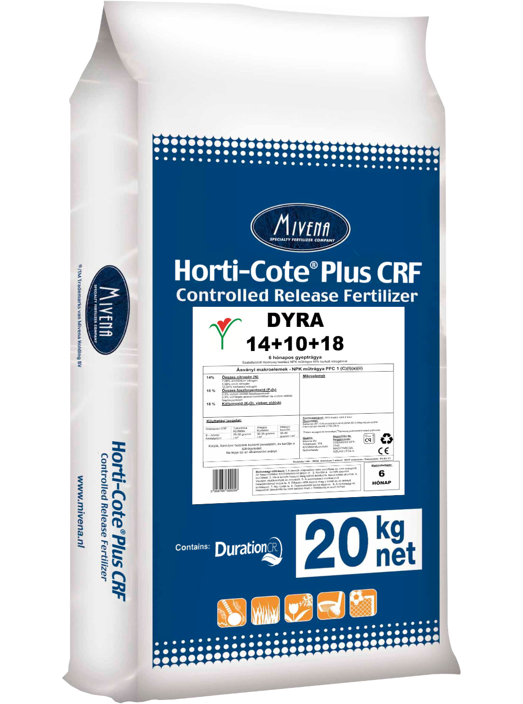 A Horti-Cote Plus termékcsalád különböző hatástartamú változatokat kínál, 2, 4, 6, 8, 12 és akár 16 hónapos tápanyag-leadással.
